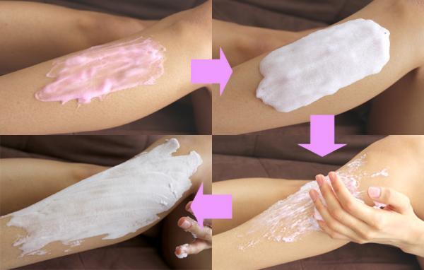 1. 片足に2~3プッシュ出して足全体にのばす。